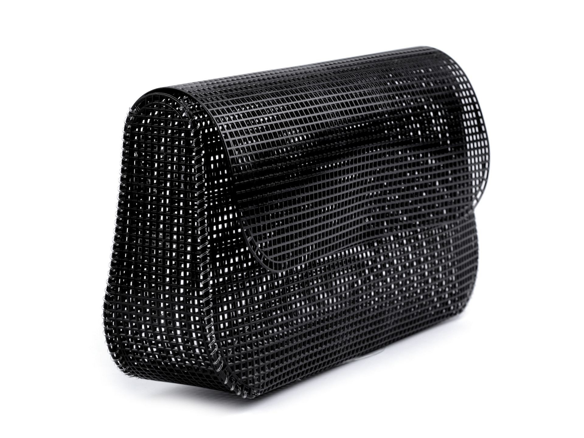 Plastikowa kanwa to półprodukt, z którego można zrobić małą torebkę z klapką o wymiarach około 27 x 15 x 7 cm. Do wyrobu użyj mocniejszej przędzy, która jest przeznaczona do robienia na drutach lub szydełkowania. Możesz też użyć sznurka lub trwalszej wstążki (np. rypsowej). Haftujesz płótno na całej powierzchni włóczką i zszywasz wzdłuż boków.