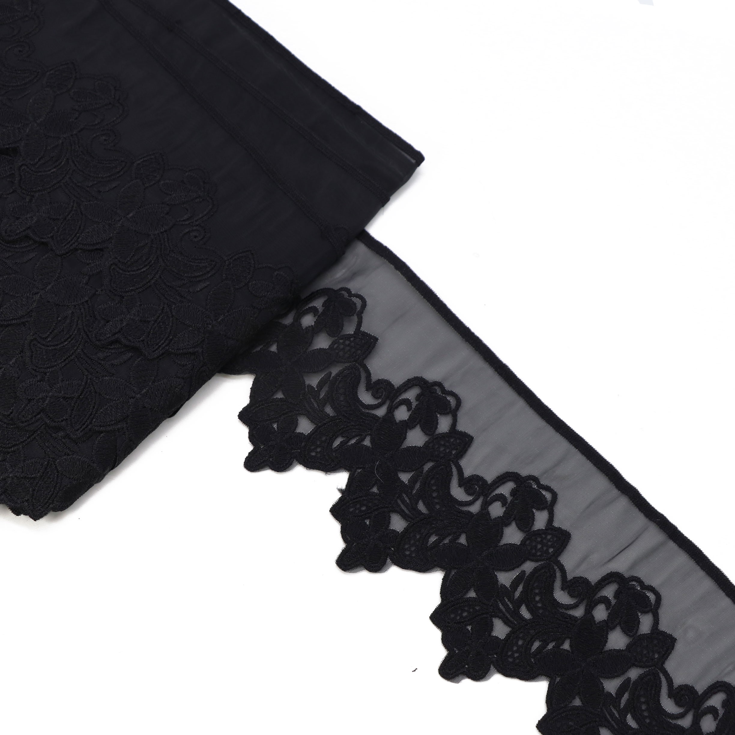KORONKA WYSZYWANA NA MONOFILU GIPIURA 10 CM CZARNA