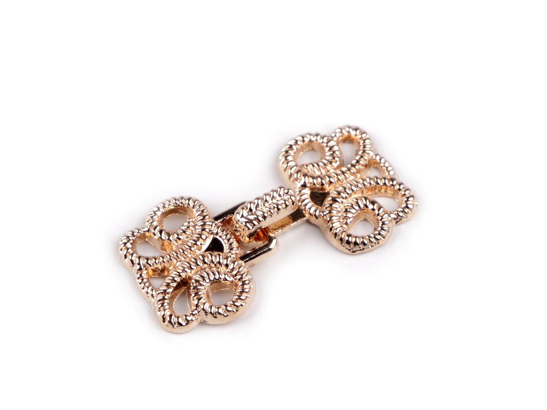 Ozdobne, filigranowe zapięcie składa się z dwóch części, które można łatwo ze sobą połączyć. Można go przyszywać zamiast guzików do bluzek, kardiganów, kamizelek, swetrów itp.