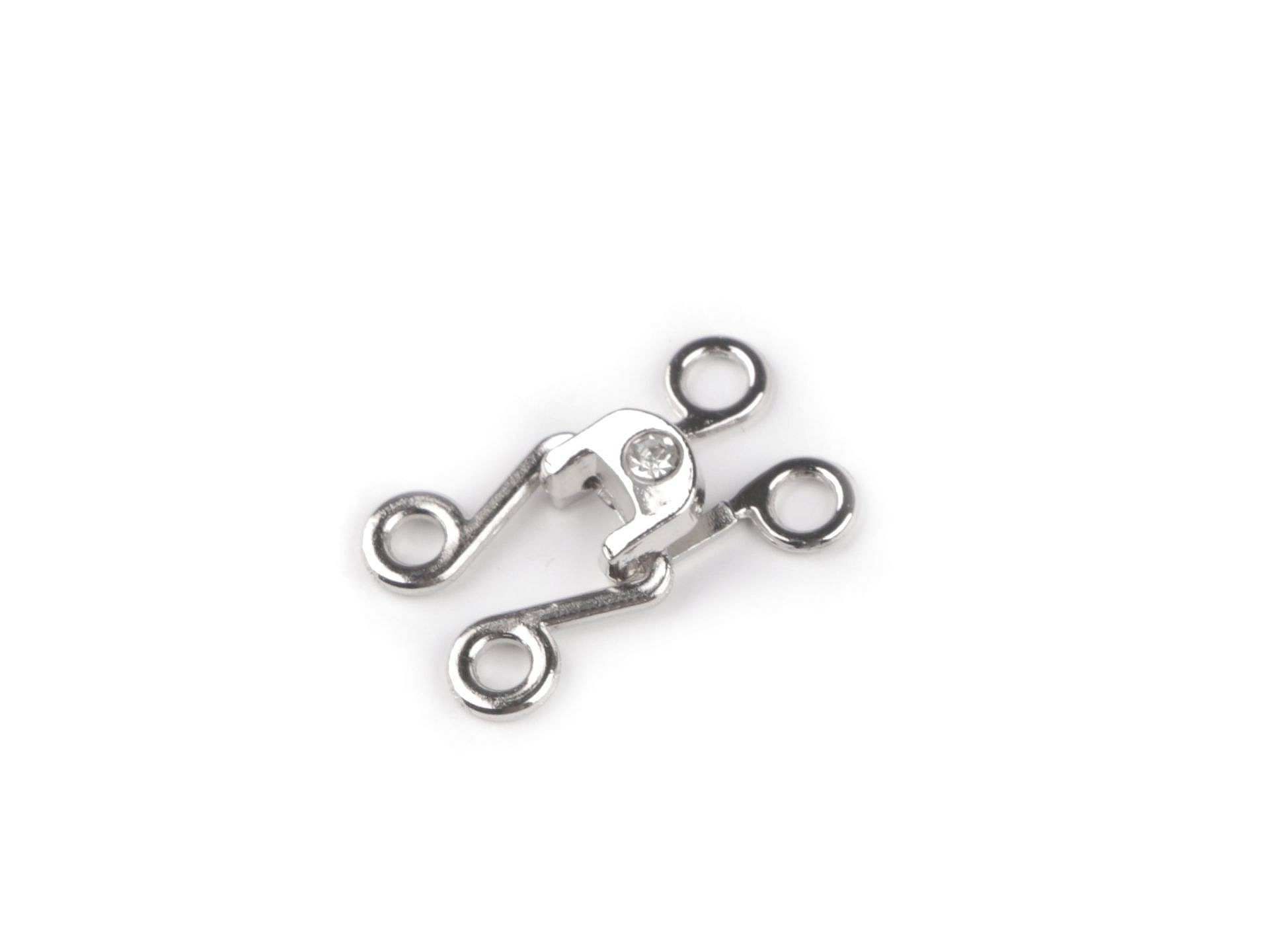 Ozdobne zapięcie z kamieniem szlifowanym składa się z dwóch części, które należy ze sobą połączyć. Wyróżni się na bluzkach, kardiganach, kamizelkach, swetrach itp.Wymiary: 15 x 25 mmOtwór do przewlekania: 3 mmKolor SREBRNYCena za 1 sztukę (komplet)