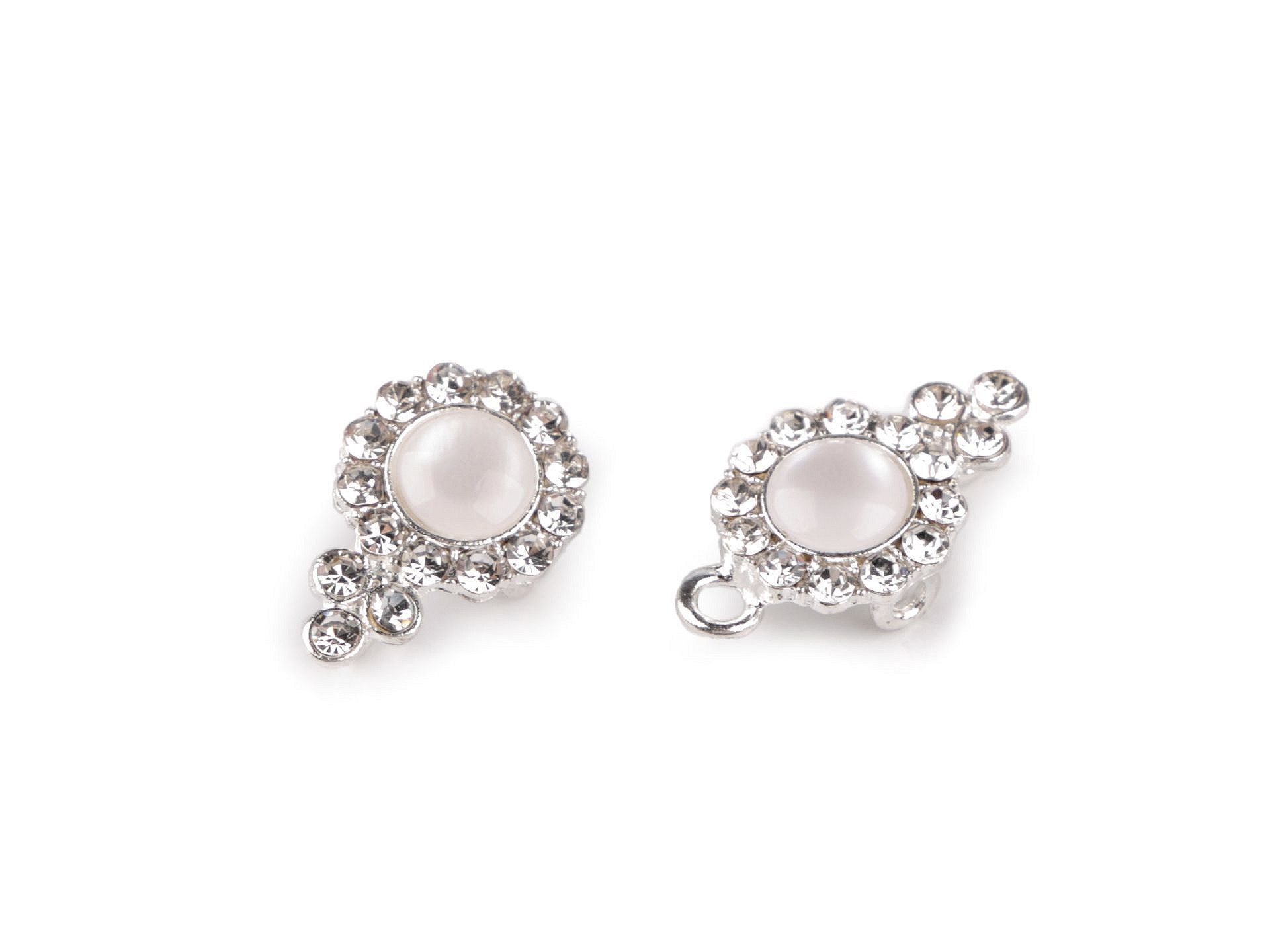 Eleganckie zapięcie z oszlifowanymi kamieniami składa się z dwóch części, które należy ze sobą połączyć. Można go naszyć na kardigany, kamizelki, swetry, sukienki, itp.Wymiary: 14 x 43 mmOtwór do przewlekania: 2 mmKolor SREBRNYCena za 1 sztukę (komplet)